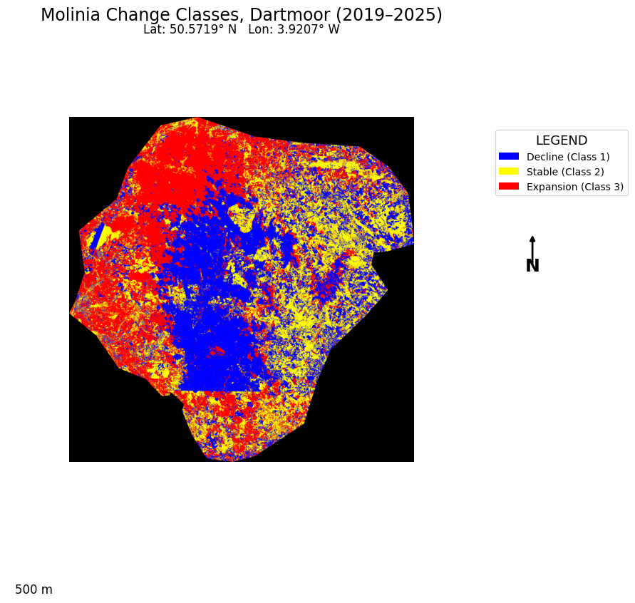 Figure 1: Molinia Change Classes at Dartmoor between 2019 and 2025